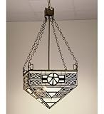 | ✚✚✚ 21 Inch Sq Wood Symbol Inverted Pendant Ceiling Fixture Color Theme: Beige Ebcg BlCollection: Mission Art Glass