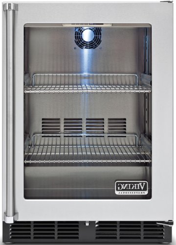 Viking Stainless Steel Full Refrigerator Built In Refrigerator VRCI1240GRSS . Viking Stainless Steel Full Refrigerator Built In Refrigerator VRCI1240GRSS. Electronic controls with digital temperature readout. Temperature can be adjusted from 33* to 39*F. Factory set at 34*F. Can be displayed in either Fahrenheit or Celsius. 5.3 cubic feet of storage. Two full extension adjustable wire shelves. 75 lbs. capacity. Each shelf accommodates 54 12-oz. cans. Removable and adjustable. Dual pane and argon filled Low 'E' energy efficient glass doors. LED display lighting. Energy Star qualified. Forced air cooling system. Powerful 700 BTU compressor. Stainless steel interior. Stainless steel exterior cabinet. Tru-Flush design allows refrigerator to fit flush into 24 deep installation cutout. Undercounter or freestanding installation. Self-closing door. Super quiet 32 - 39 db sound rating. Black kickplate. Adjustable leveling legs. Three-year full - covers complete unit. Six-year full - sealed system. Lifetime limited - stainless steel exterior. 12-year limited - sealed system. Ninety-day limited - cosmetic parts such as glass, painted items, and decorative items. Warranty valid on Viking products shipped within the United States and Canada. Electrical Requirements: 115V/60 Hz; 15 Amp Dedicated Circuit; 5 Ft. Power Cord Attached To Product. Maximum Amp Usage: 3.0 Amps. Maximum Storage Capacity: 5.3 Cu. Ft. Approx. Shipping Weight: 215 Lbs. Overall Width: 23 7/8. Overall Depth: 26 9/16. Overall Height: 34 1/4. Cutout Width: 24. Cutout Depth: 24. Cutout Height: 34 1/2 - 35 1/2. Viking introduced professional cooking to the home when their first range shipped in 1987. Now that same exceptional performance extends into every corner of the kitchen - even the backyard. Refrigerators. Wine Cellars. Dishwashers. Grills. Cookware. Cutlery. Small appliances. It's enough to turn any cook into a chef. When people think of Viking, the bold, commercial look of the Professional Series range is the image that most likely pops into their heads. Ultra-premium features like