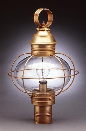 Caged Onion Post Dark Antique Copper 3 Candelabra Sockets Frosted Glass?Northeast Lantern 2543 This lighting fixture is hand made in New Hampshire from 100% brass or copper materials. Includes a lifetime guarantee, except for glass. UL Listed. The all natural finish that will not peel or flake off. Features: -Post Lantern. -Onion collection. -Available in multiple finishes. -Available with Clear, Clear Seedy, Frosted, Optic and Optic Seedy glass types. -Solid brass construction. -Carefully cut, soldered, finished and wired by hand. -Crafted with a detachable globe. -Mounting Area: 3" Diameter. -Made in the USA. -Manufacturer provides lifetime guarantee. Specifications: -Accommodates (3) 60W Candelabra base bulbs. -Overall Dimensions: 20" H x 12" W x 12" D. Finish: Dark Antique Copper, Glass Type: Frosted