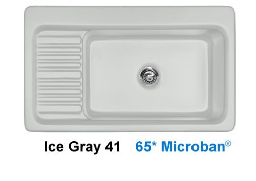 Features CorStone 66365 Ice Gray with Microban Greystone Greystone Self Rim Single Bowl Kitchen Sink with Drainboard and 3 Faucet Holes 663?