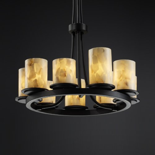 Justice Design ALR-8766-10-MBLK, Alabaster Rocks Dakota Chandelier Lighting, 9LT, 540w, Black